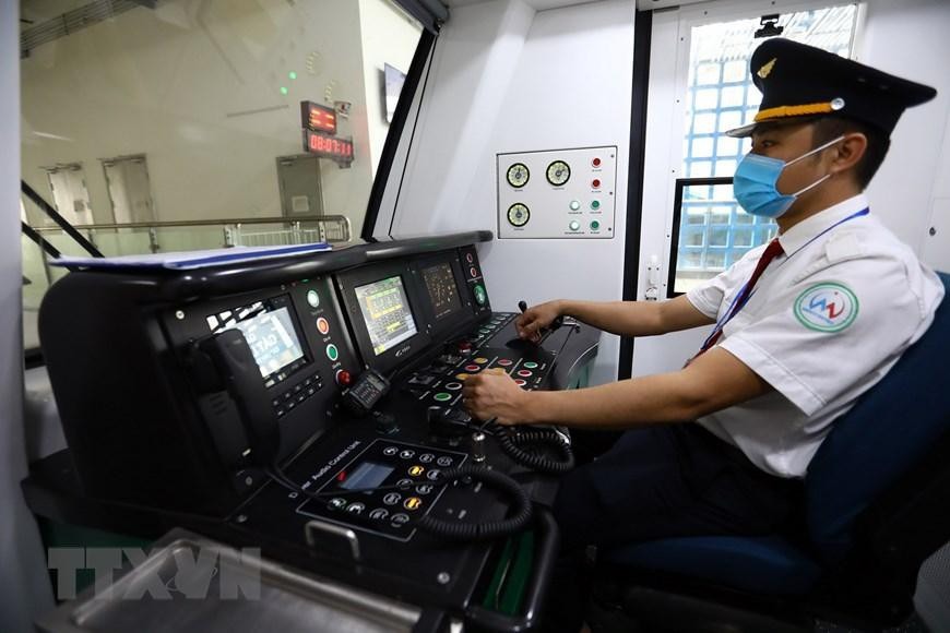 Đoàn tàu chạy với vận tốc thiết kế tối đa 80 km/giờ, vận tốc bình quân khai thác 35 km/giờ, khai thác với tần suất vận chuyển khoảng 2 phút/chuyến. (Ảnh: Thành Đạt/TTXVN)