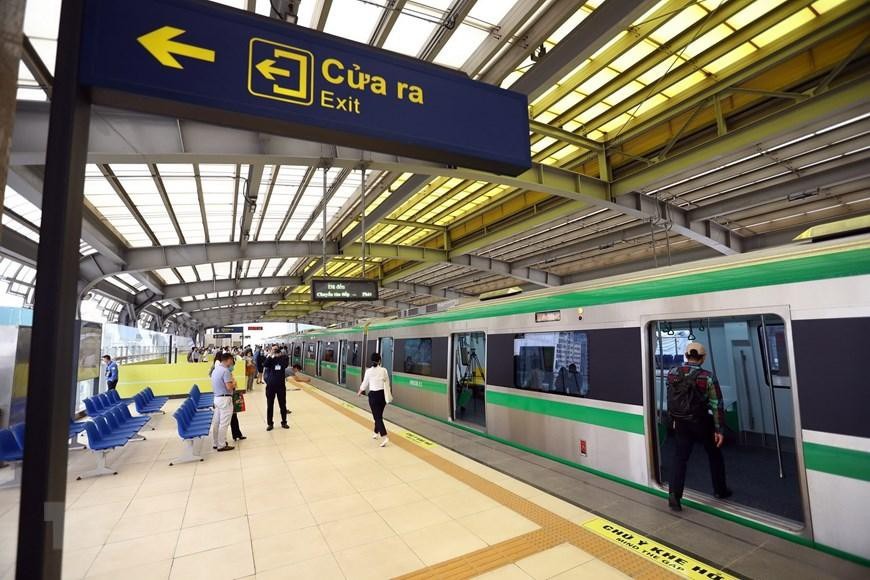 Thời gian đoàn tàu chạy từ ga này đến ga tiếp theo là khoảng 1 phút với quãng dừng khoảng 30-45 giây. (Ảnh: Thành Đạt/TTXVN)