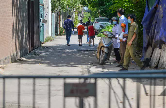 Tại ngõ 11 Tân Mỹ thuộc tổ dân phố số 15 (phường Mỹ Đình 1), lực lượng chức năng đã tiến hành dựng hàng rào phong toả. Do đa số người dân đều đóng cửa nhà nên sau khi lập chốt cách ly, lực lượng chức năng đi gõ cửa từng nhà để gửi giấy khai báo y tế và thông báo người dân đi xét nghiệm