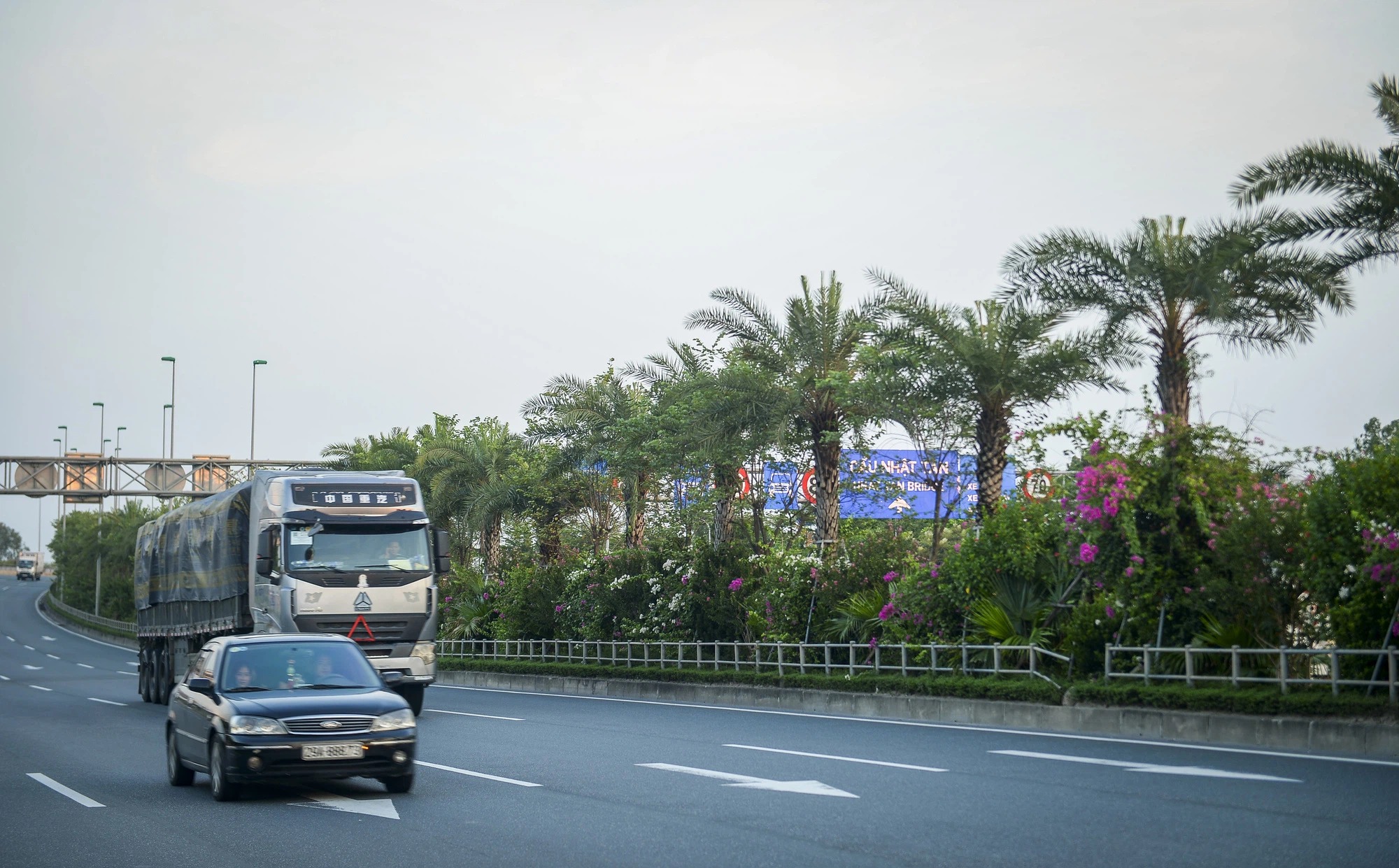 Hiện trường xe tải bốc cháy ngùn ngụt trên cao...