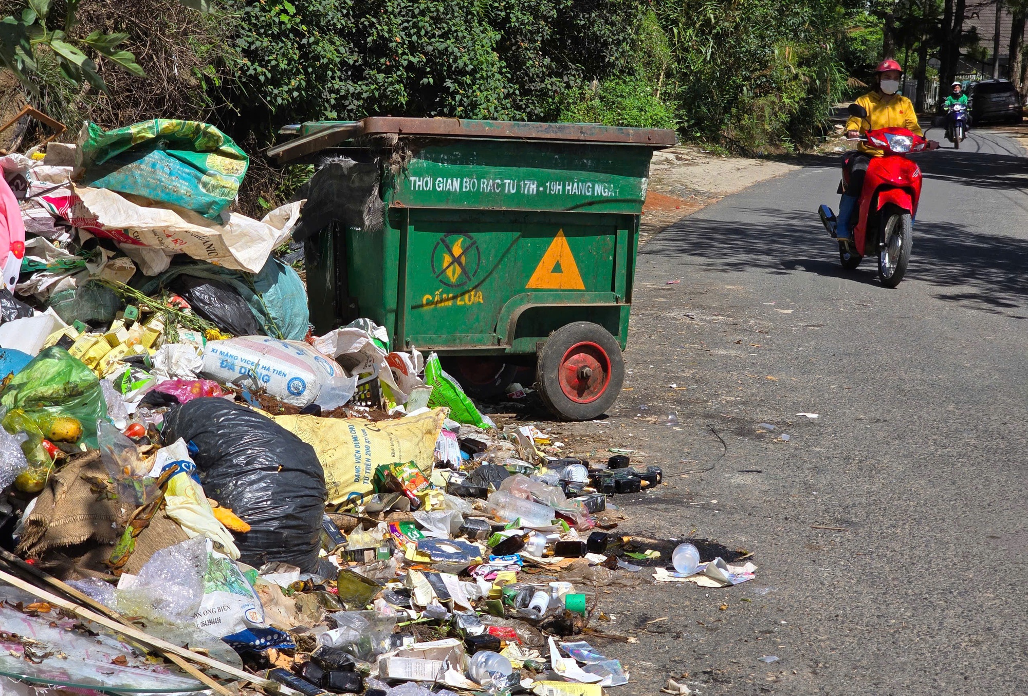 Hàng trăm chai, lọ mỹ phẩm còn nguyên bao bì bị vứt lẫn vào rác thải sinh hoạt trên đường Trịnh Hoài Đức, TP Đà Lạt, tỉnh Lâm Đồng