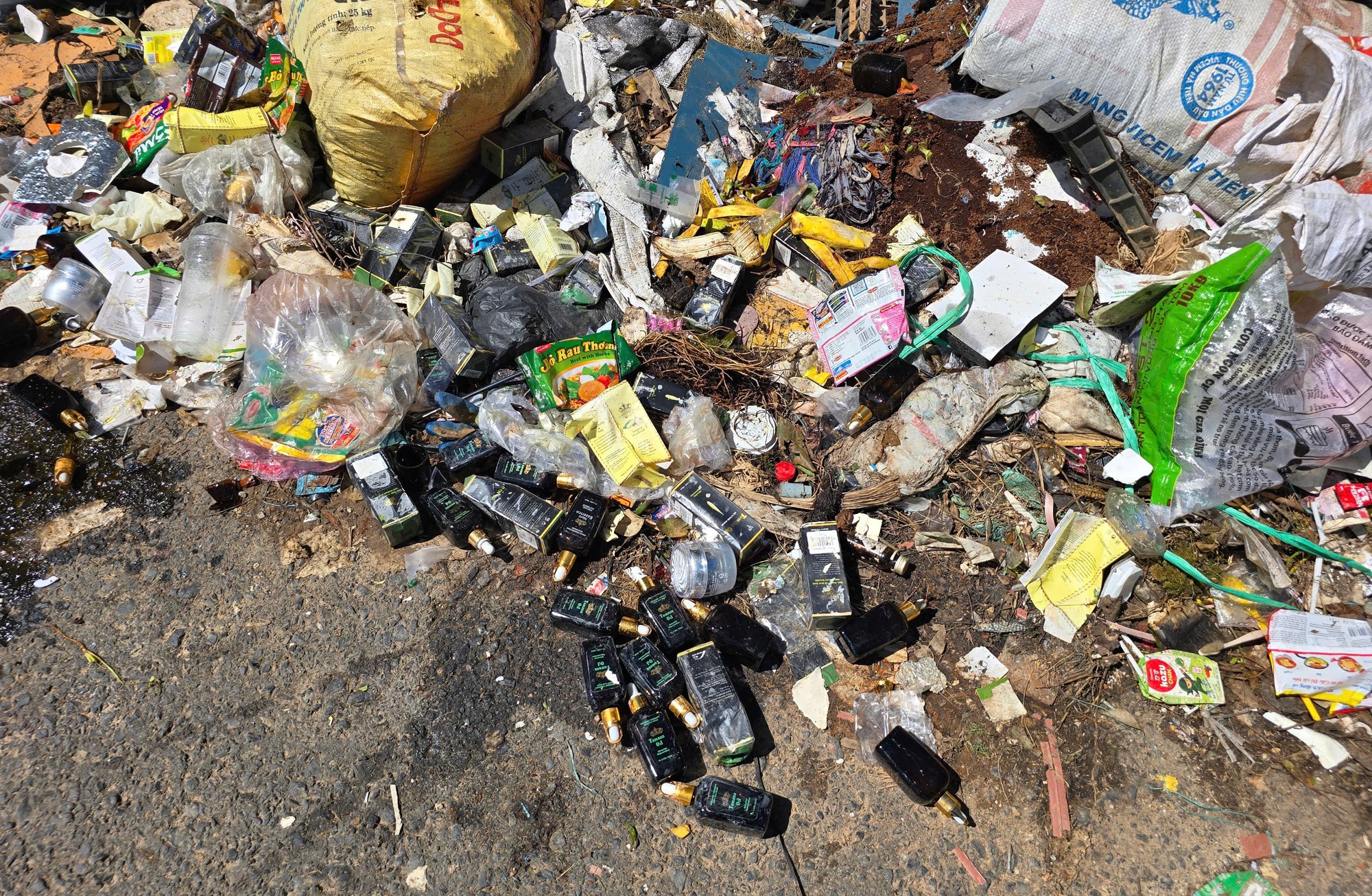 | Cận cảnh hàng trăm chai, lọ mỹ phẩm vứt bỏ ven đường ở Đà Lạt |