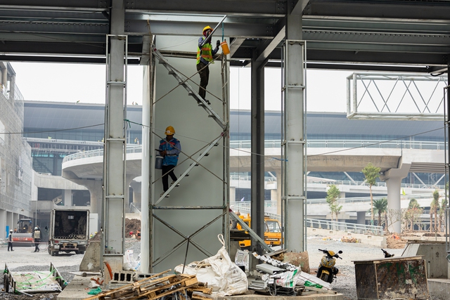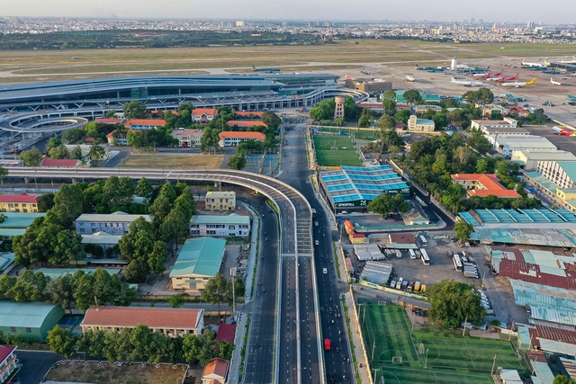 Sau nhiều tháng thi công, cầu vượt trước nhà ga T3 sân bay Tân Sơn Nhất cùng hệ thống đường kết nối đã bước vào giai đoạn hoàn thiện, sẵn sàng đưa vào vận hành.