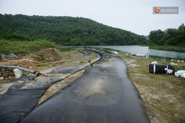 Lượng bùn ô nhiễm sau khi được hút lên sẽ chảy theo các ống dẫn bùn được lắp đặt sẵn để đẩy thẳng bùn lên bờ. Sau đó, bùn sẽ được bơm vào một ao tạm nằm cạnh mương dẫn nước, dưới đáy ao được lót bạt chống thấm tránh bùn ngấm ra ngoài.