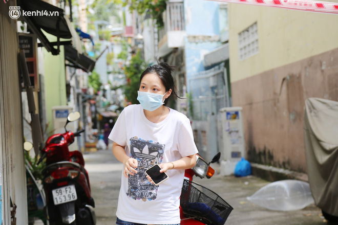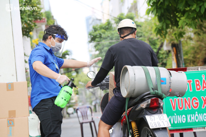 Vừa hướng dẫn các tình nguyện viên trực chốt, vừa thông báo cho các shipper khi đến giao hàng, chú Sơn cho biết bản thân là người sinh sống tại hẻm 524 nên quen thuộc những người dân sống trong này. Theo quy định, toàn bộ shipper đến giao hàng đều không được vào hẻm, việc giao hàng cũng phải tuân thủ giãn cách, phun xịt khử khuẩn an toàn mới được ban giao.