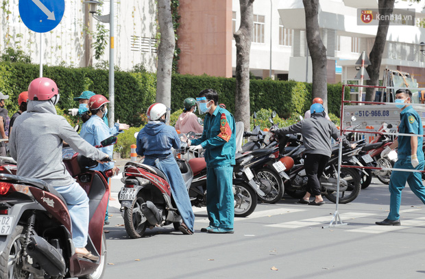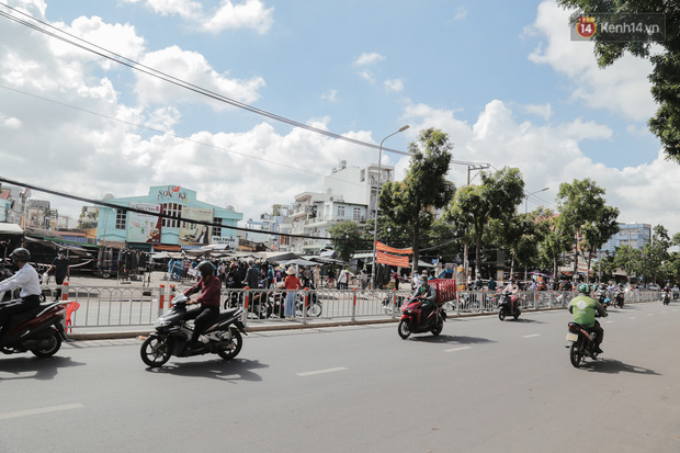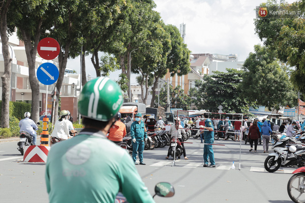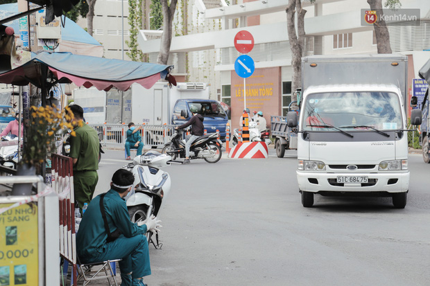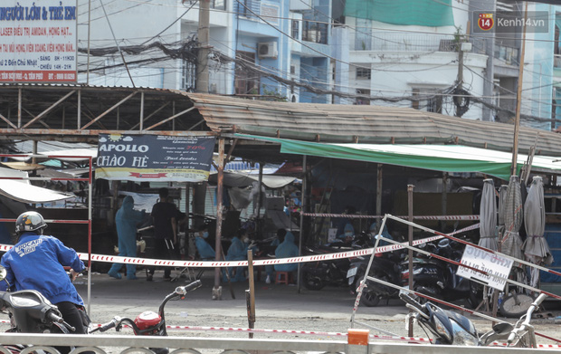 Một đoạn đường Bờ Bao Tân Thắng đi qua chợ cũng được phong toả để phục vụ việc phun khử khuẩn và lấy mẫu xét nghiệm Covid-19.