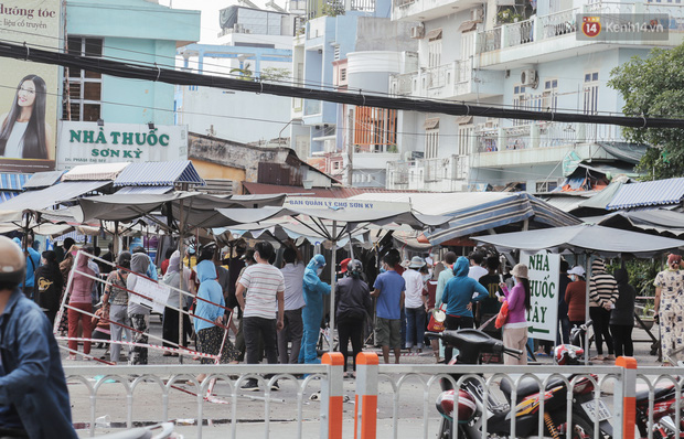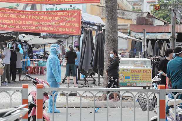 Toàn bộ hàng quán gần bên chợ cũng phải đóng cửa, hẻm 18 Đỗ Nhuận (phía sau chợ Sơn Kỳ) cũng bị phong toả vì liên quan đến ca mắc Covid-19.
