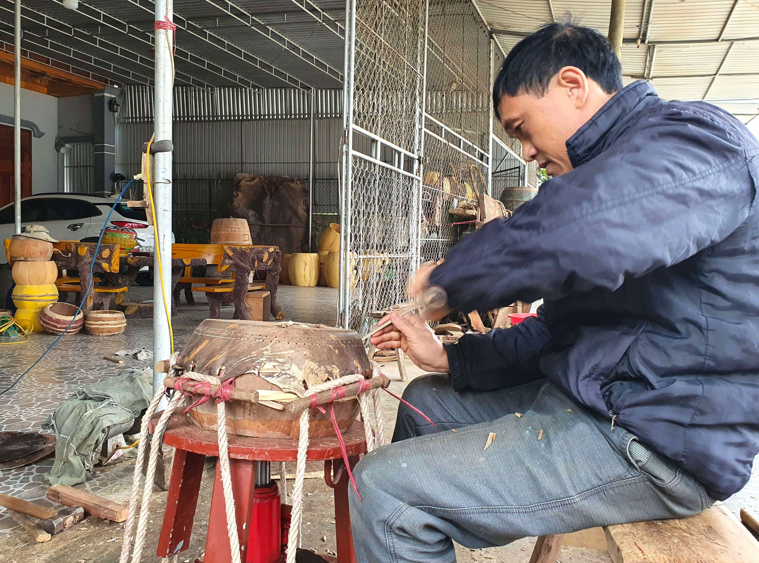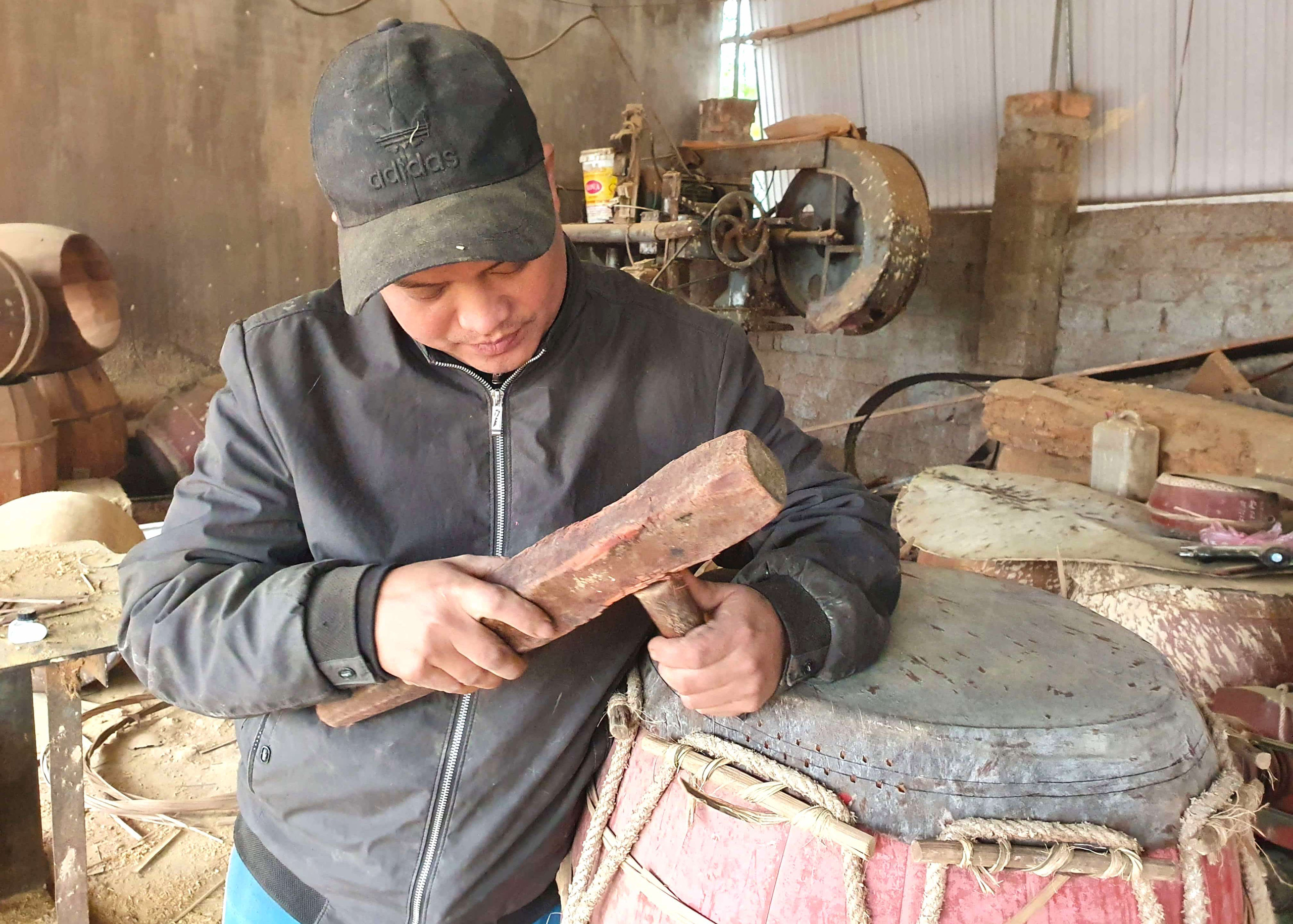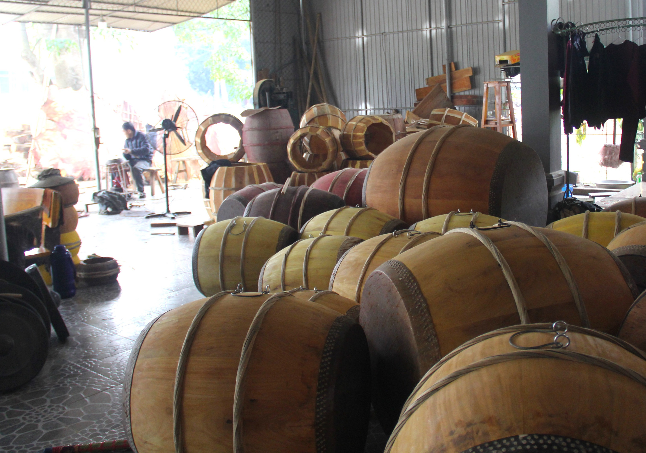 Cận Tết khi thời gian diễn ra nhiều lễ hội tới gần thì những gia đình làm trống truyền thống cũng hối hả, tất bật làm ngày làm đêm để kịp giao hàng cho khách.