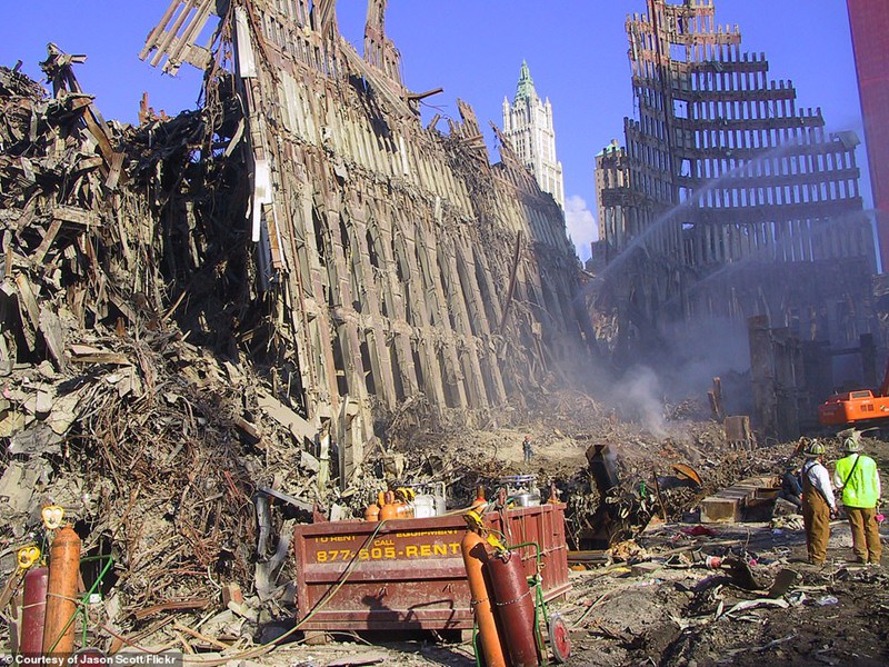 Các công nhân ở Mỹ đã phải làm việc miệt mài suốt gần 2 năm trời để dọn dẹp hiện trường tang thương vụ công khủng bố ngày 11/9/2001.