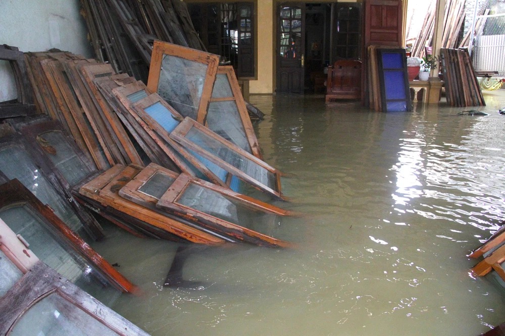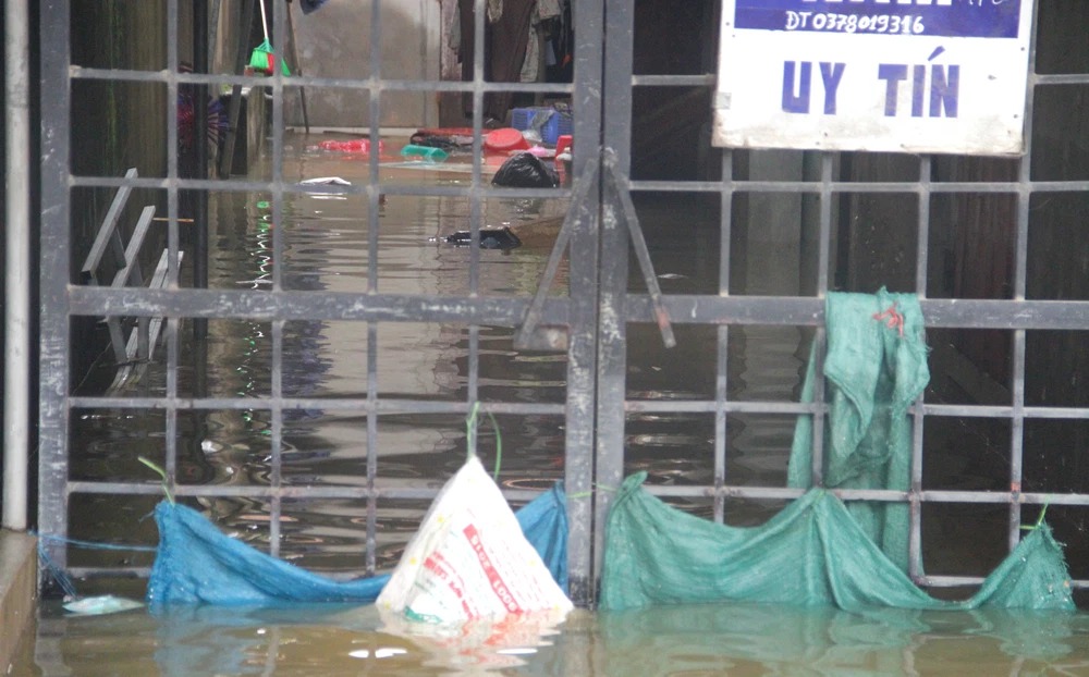 Đến trưa 27/9, vẫn còn rất nhiều hộ dân nước ngập hơn 1,5m, lút cả cổng vào nhà.