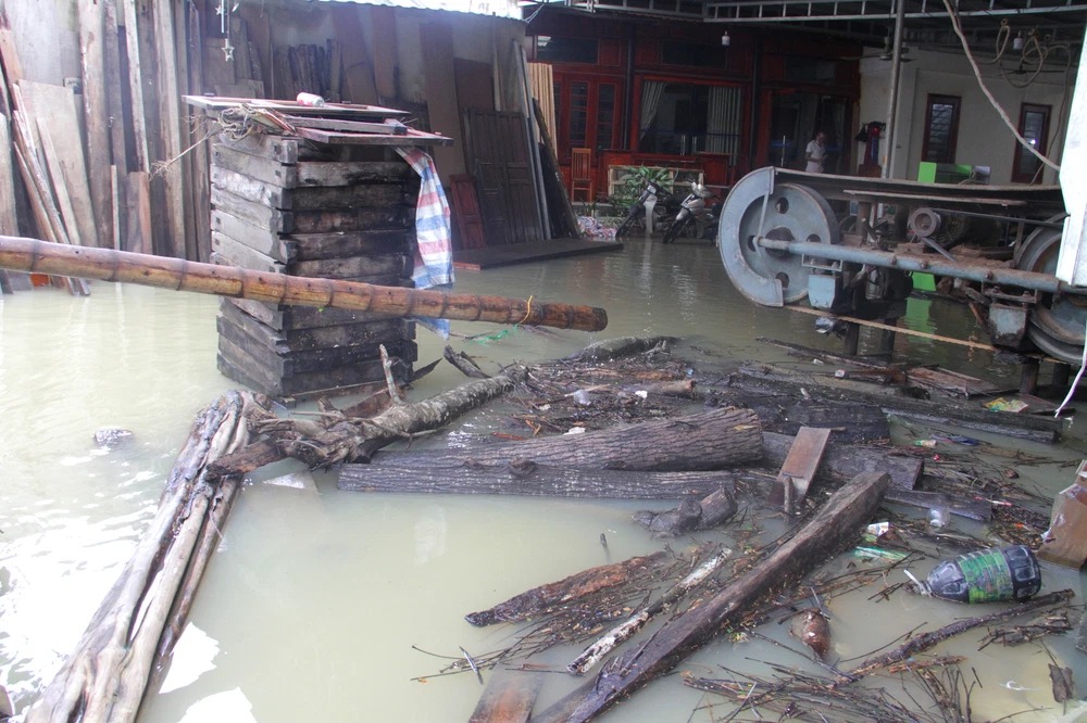 Nước ngập sâu khiến nhiều tài sản của người dân ở xã Quỳnh Lưu bị chìm trong nước.