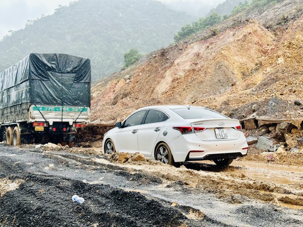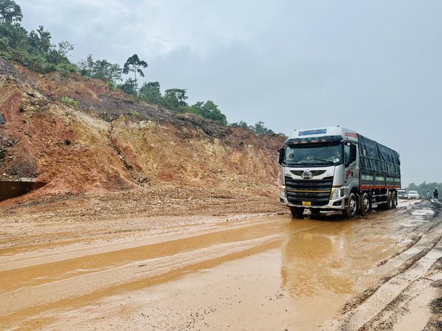 Do mưa lớn, liên tục, tại Km46+300 trên tuyến đường cao tốc La Sơn - Túy Loan (nối Đà Nẵng và TT-Huế) xảy ra sạt lở nghiêm trọng với khối lượng bùn đất lớn.
