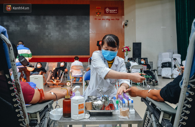 Để kịp thời đáp ứng nhu cầu máu cho cấp cứu và điều trị, Viện Huyết học – Truyền máu Trung ương đã có công văn báo cáo Bộ Y tế để được phép huy động vận động nhiều người hiến máu song song với tăng cường các biện pháp phòng chống dịch. Từ ngày 5/2, hưởng ứng lời kêu gọi của Viện, hàng trăm người dân, người nhà bệnh nhân, đã không quản ngại khó khăn, tích cực đến các cơ sở sẵn sàng hiến máu và tiểu cầu.Sau 2 ngày phát động (4-5/2), Viện Huyết học đã tiếp nhận được 908 đơn vị máu và 256 đơn vị tiểu cầu. Các điểm hiến máu cố định ngoại Viện ngày bình thường chỉ được 10 đơn vị máu mỗi điểm thì đã có tới 80 đơn vị máu (26 Lương Ngọc Quyến), 37 đơn vị (ngõ 122 đường Láng) và 21 đơn vị (132 Quan Nhân).Không chỉ tại Hà Nội, 2 ngày nay, Bệnh viện Truyền máu – Huyết học TP. Hồ Chí Minh cũng đã tiếp nhận được gần 800 đơn vị máu.Sau khi đọc bài kêu gọi hiến máu trên mạng xã hội và biết được tình trạng hiện tại bệnh viện cạn kiệt các đơn vị máu, chị Ngọc (28 tuổi, nhân viên văn phòng) đã quyết định đăng ký hiến máu. "Vốn đã từng hiến máu nên tôi biết mình thuộc nhóm máu O - 1 trong số 2 nhóm máu đang thiếu hụt trầm trọng hiện nay. Và đây là lần thứ 3 tôi đăng ký. Khi đến đây, tôi rất vui khi chứng kiến khung cảnh hàng trăm người đợi để được hiến máu. Về tình hình dịch bệnh, ngày nào tôi cũng đọc báo, cập nhật tin tức trên website chính thức của Bộ Y tế và tuân theo các chỉ dẫn, tự bảo vệ mình cũng chính là bảo vệ người khác" - chị Ngọc nói.Đây là khu vực hiến tiểu cầu. Một người hiến tiểu cầu bằng máy chiết tách tự động hay còn gọi là tiểu cầu đậm đặc, mỗi lần hiến được 6 đơn vị tiểu cầu, trong khi người hiến máu toàn phần 450 ml tối đa chỉ điều chế được 01 đơn vị tiểu cầu. Truyền tiểu cầu đậm đặc giảm nguy cơ gây xuất hiện các phản ứng miễn dịch, giảm nguy cơ gây lây nhiễm HIV và các bệnh nhiễm trùng cho người bệnh.Chị Lê Thị Loan, giáo viên trường Tiểu học Thuỵ Lâm (huyện Đông Anh, Hà Nội) đến Viện huyết học để đăng ký hiến tiểu cầu.Tính đến 11h30 ngày 6/2, lượng máu dự trữ của Viện Huyết học và Truyền máu Trung ương vẫn chỉ còn 5.000 đơn vị máu, nhóm A đáng báo động khi còn chưa đến 200 đơn vị. Bởi mỗi ngày, Viện cần tối thiểu 1.500 đơn vị máu để cung cấp cho 170 bệnh viện tại 25 tỉnh, thành phố (với diện bao phủ là 40 triệu dân). Trong khi đó, số lượng máu tiếp nhận của ngày 4/2 và 5/2 tuy đã tăng lên, nhưng vẫn có đến 50% là máu được hiến tặng từ người nhà bệnh nhân.Các đơn vị máu sau khi tiếp nhận sẽ được phân loại và sắp xếp...... trước khi chuyển tới Khoa Điều chế máu và các thành phần máu tại Viện huyết học.Tại đây, các nhân viên tiến hành xử lý các đơn vị máu.