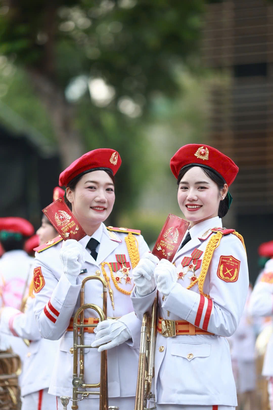 Khối nữ Quân nhạc có nhiệm vụ mở màn diễu binh với âm thanh hùng tráng, ngân vang. Hai nữ chiến sĩ giữ nụ cười tươi trước ống kính trước khi bước vào chương trình chính của đại lễ kỷ niệm 50 năm Ngày Giải phóng miền Nam, thống nhất đất nước (30/4/1975-30/4/2025).