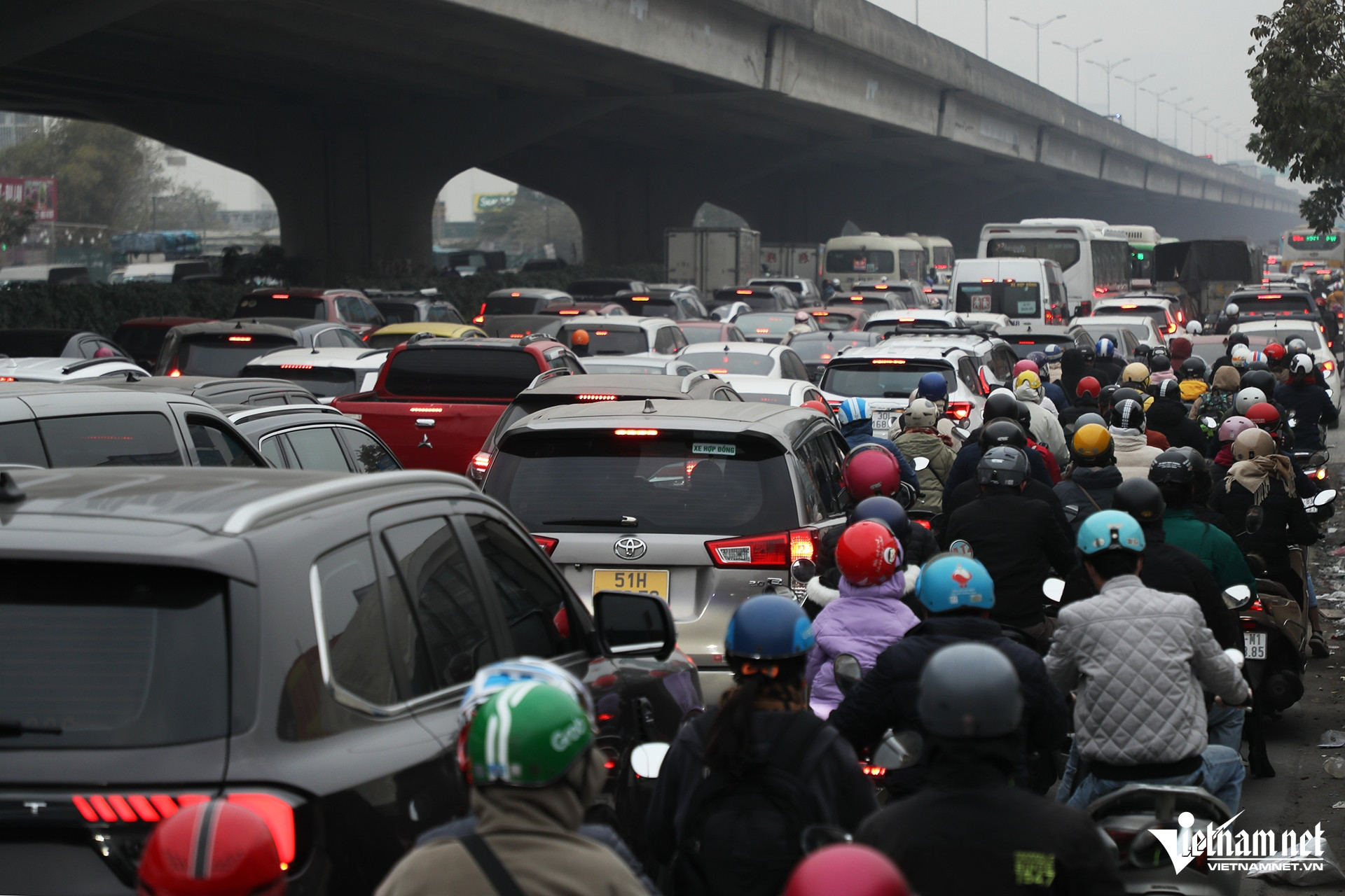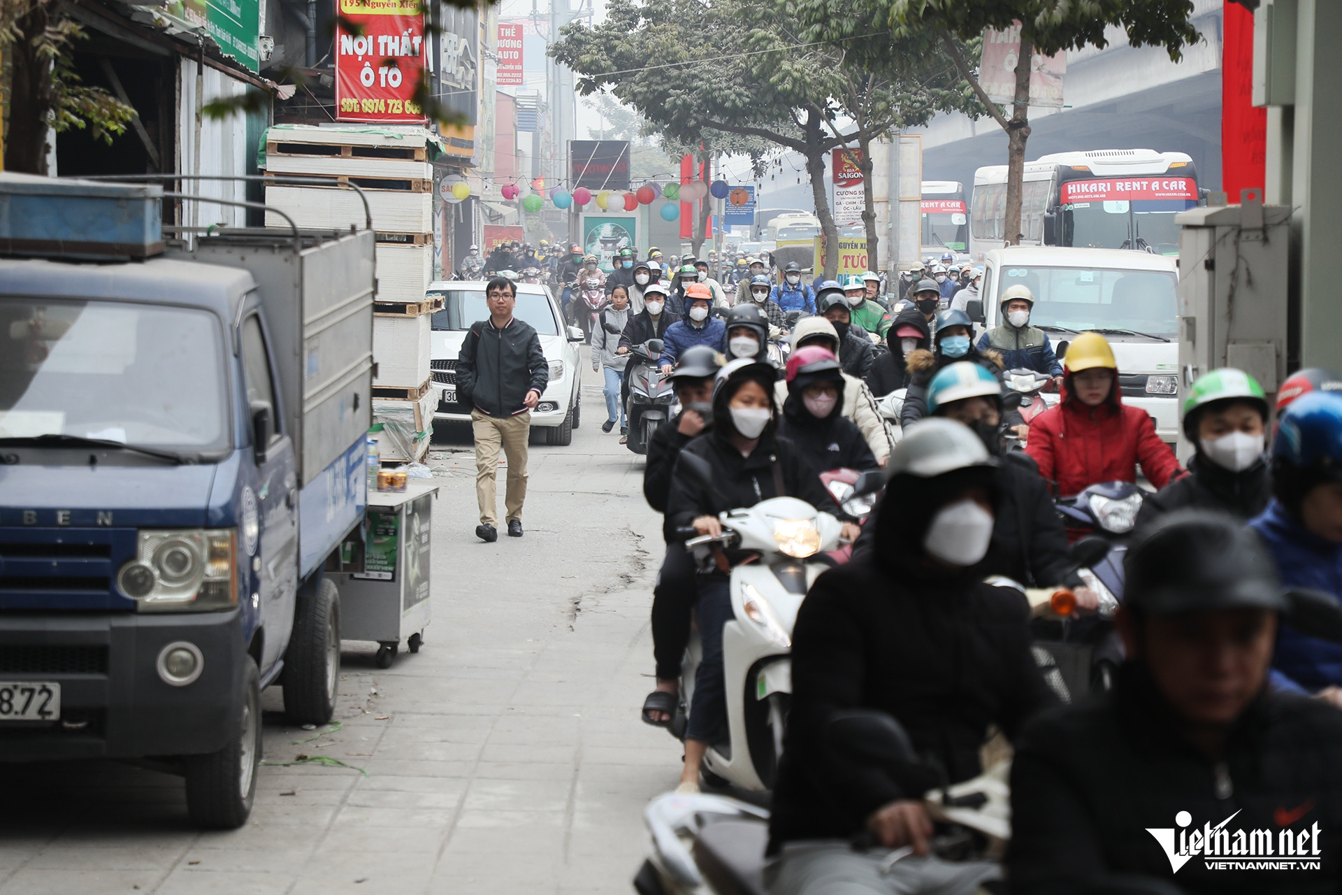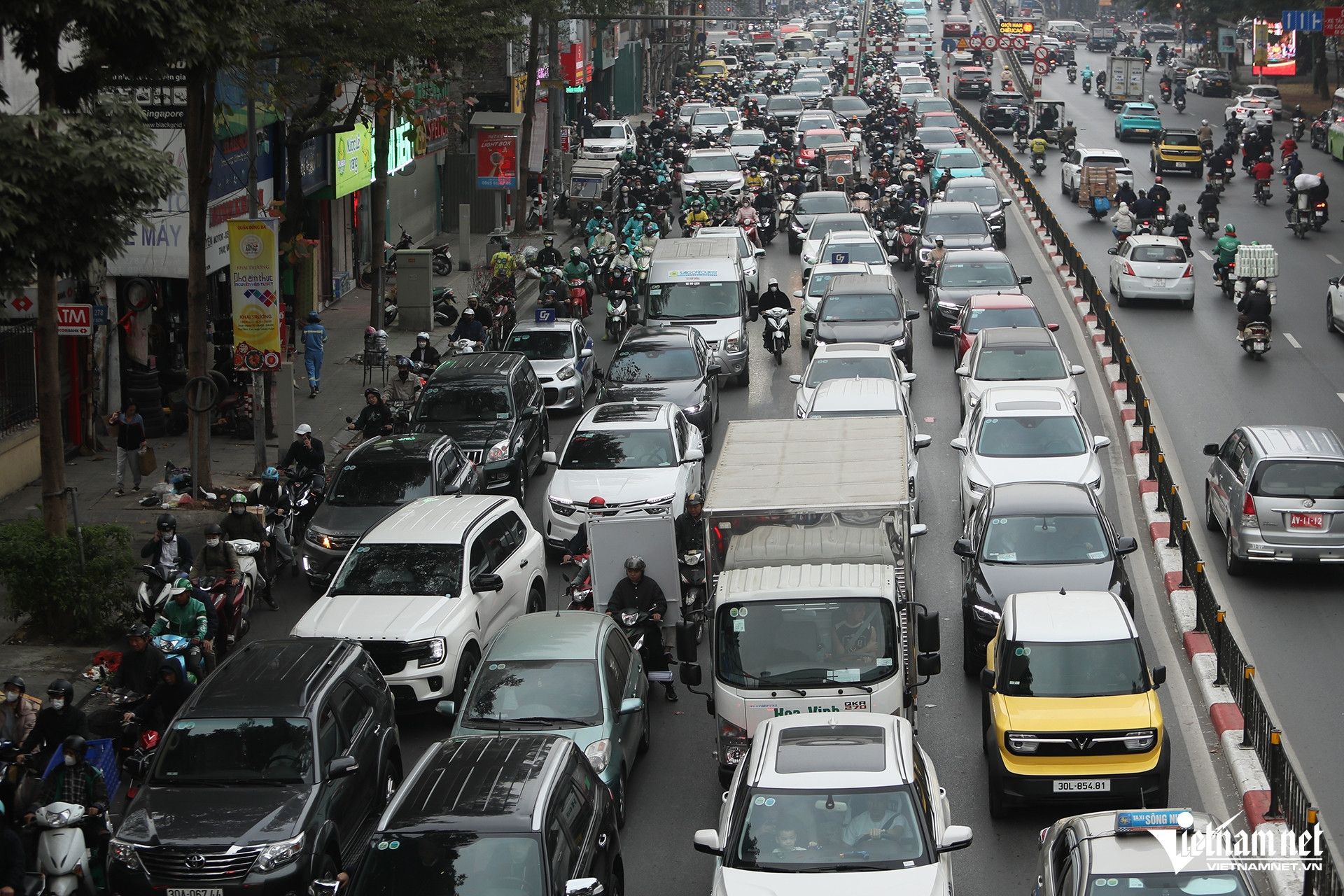 Những ngày cận Tết Nguyên đán, đường phố Hà Nội luôn trong tình trạng đông đúc, kèm theo đó là hình ảnh ô tô dàn hàng ngang chắn lối đi của xe máy.