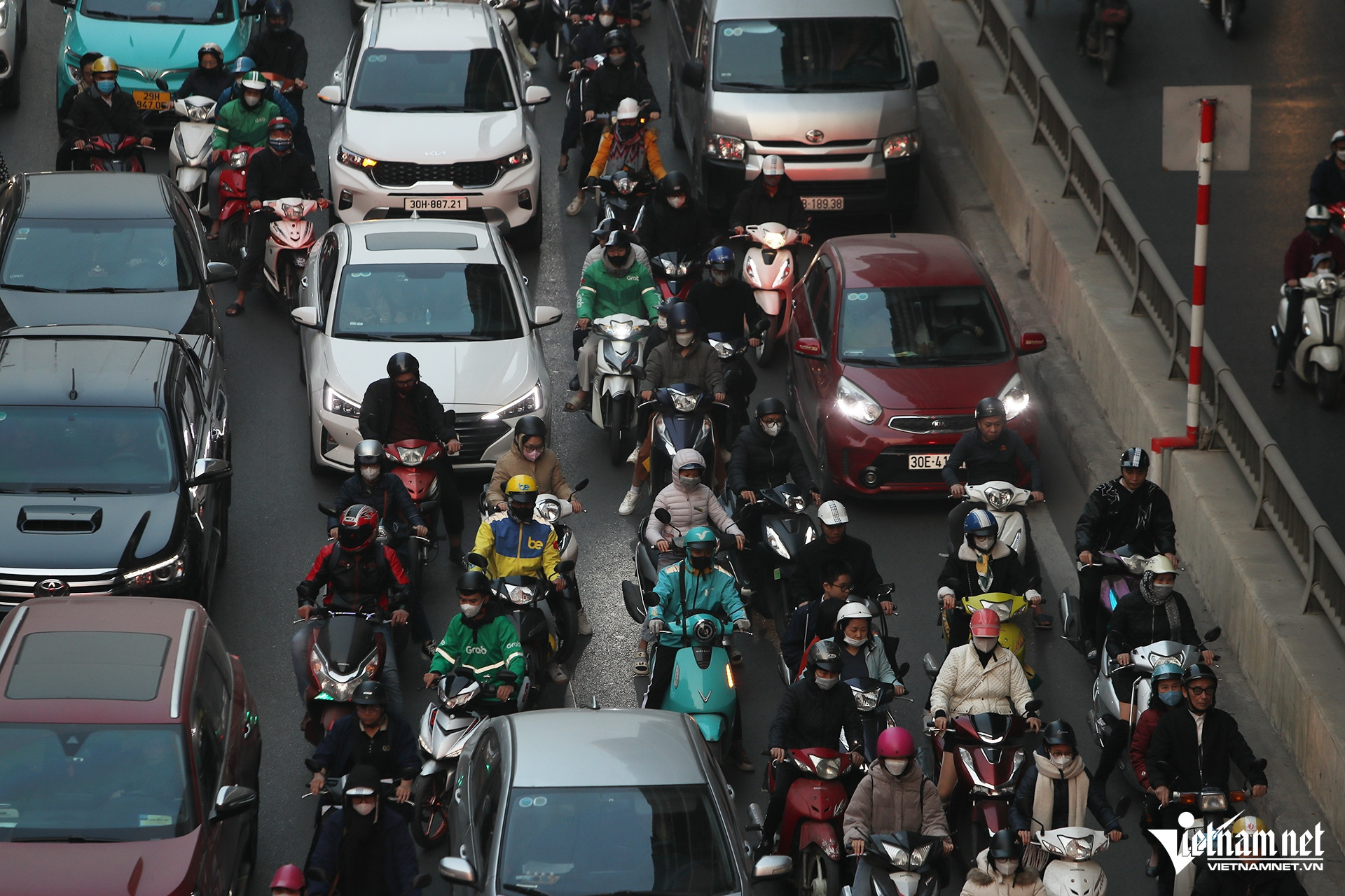 24/01/2025 14:07Cận Tết Nguyên đán, dòng ô tô 'bao vây' xe máy trên đường phố Hà Nội