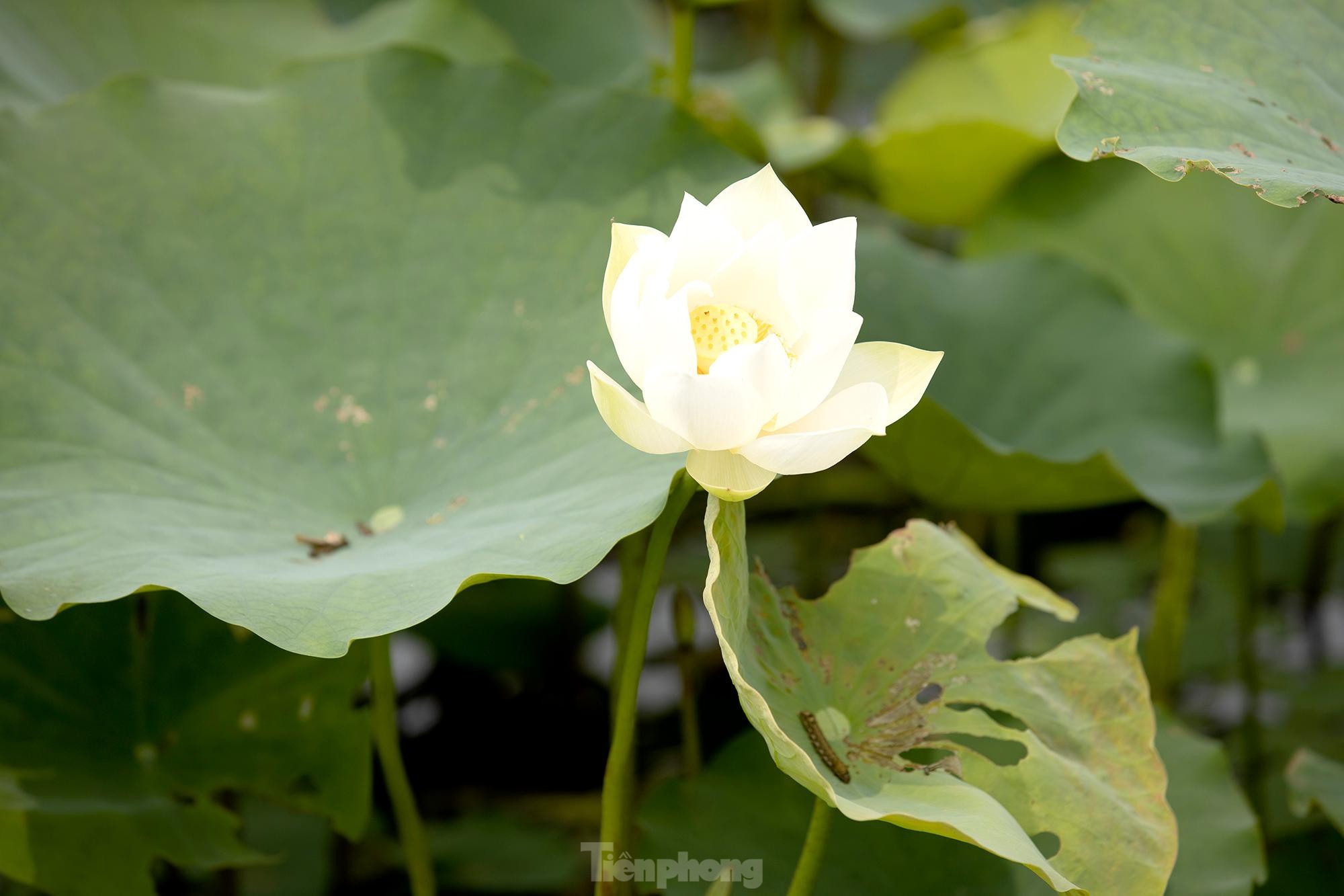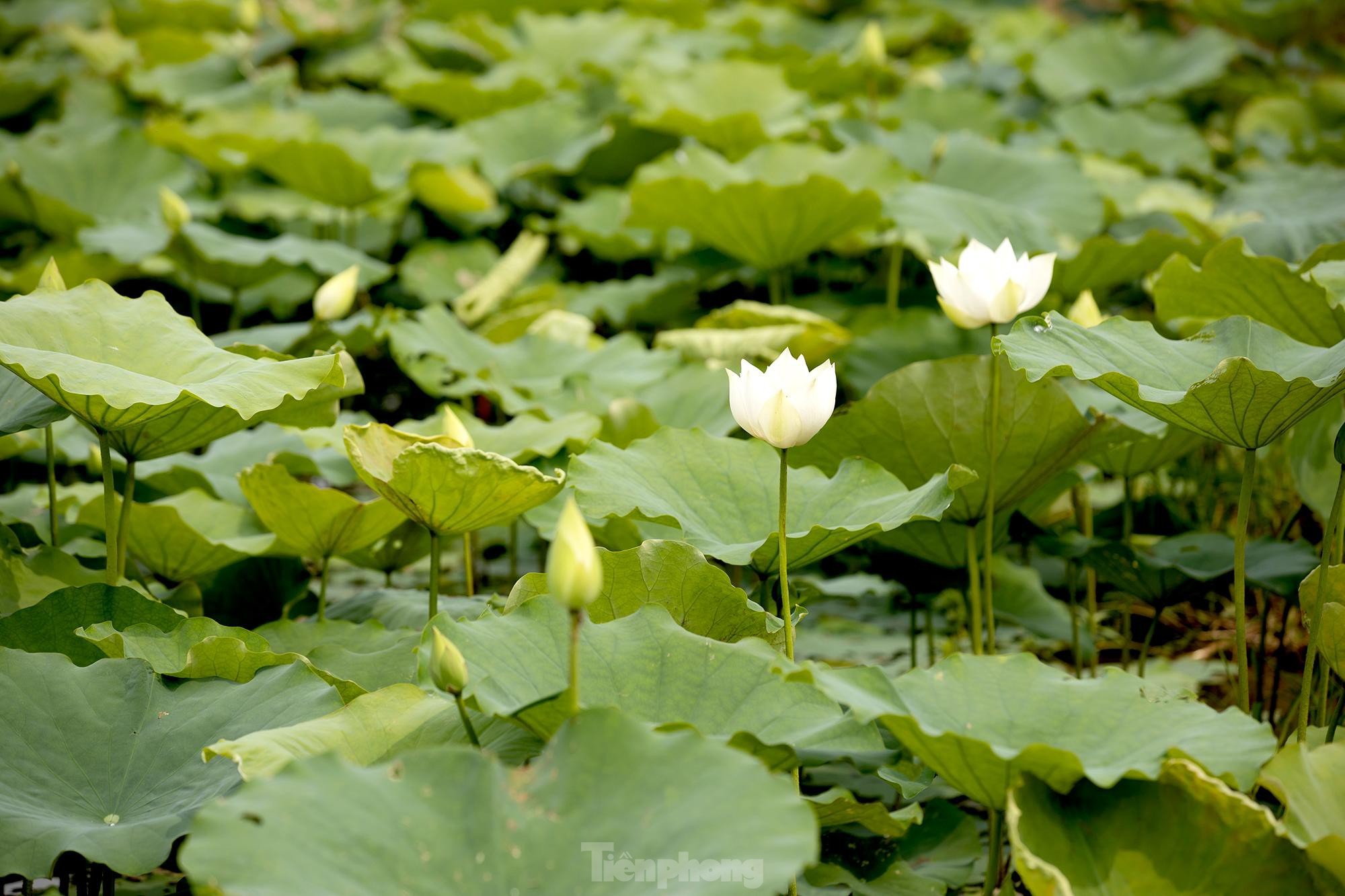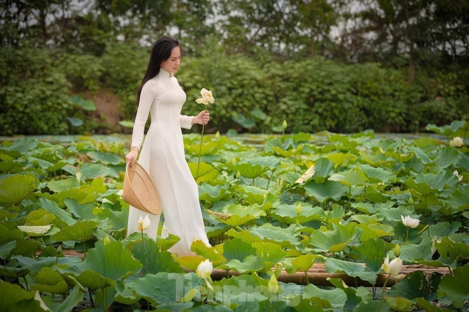 Cách trung tâm thành phố Hà Nội khoảng 20 km, cánh đồng sen trắng rộng mênh mông ở xã Tam Hưng, huyện Thanh Oai, Hà Nội đang vào đầu vụ là địa điểm đang thu hút các bạn trẻ tới đến ngắm hoa và chụp ảnh.