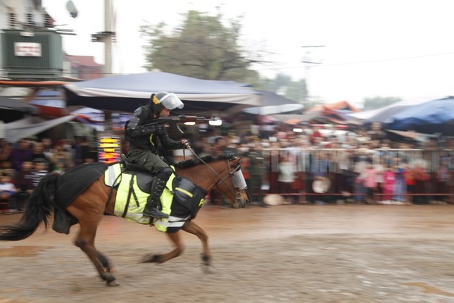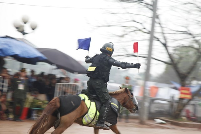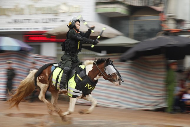 16/03/2024 23:09Cảnh sát cơ động kỵ binh rạp mình trên lưng ngựa, ngắm bắn súng AK