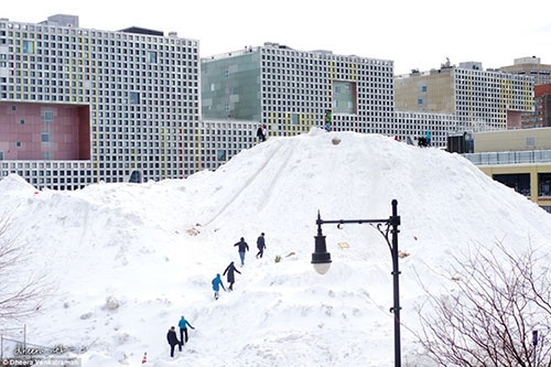 "Núi tuyết" với chiều cao tương đương tòa nhà 5 tầng xuất hiện trong khuôn viên của Viện Công nghệ Massachusetts, thành phố Boston, bang Massachusetts hôm 20/2. Tại những nơi khác trong thành phố Boston, độ dày của tuyết lên tới 2,5 m. |