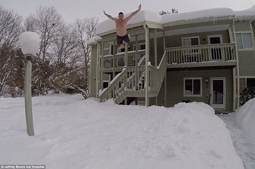 Nhiều người dân tại thành phố Boston coi việc nhảy từ cửa sổ hay ban công xuống đống tuyết là một thú tiêu khiển. Ảnh: YouTube |