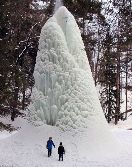 Đài phun nước trong Công viên Quốc gia Letchworth, bang New York, Mỹ trở thành "núi lửa băng" sau khi nước đóng băng vì nhiệt độ âm. Ảnh: Jo Beth Rath |