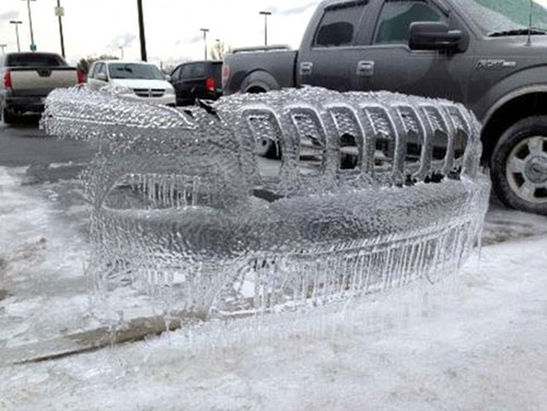 Băng bao phủ thanh chắn va đập của một ô tô trong bãi đỗ xe tại thành phố Greenville, bang South Carolina, Mỹ vào ngày 20/2. Sau khi xe rời khỏi bãi, khối băng vẫn giữ nguyên vị trí. Ảnh: Daily Mail |