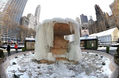 Đài phun nước Josephine Shaw Lowell tại thành phố New York, Mỹ, đóng băng hôm 21/2 |