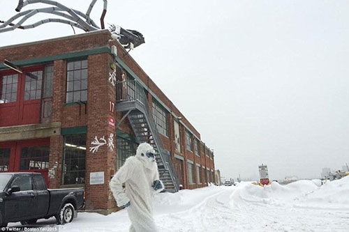 Một người dân mặc trang phục kín từ đầu tới chân khi chạy bộ ở thành phố Boston. Ảnh: Twitter |