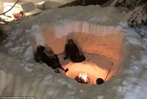 Để chống chọi thời tiết giá lạnh, nhiều người dân ở Boston đào hố trong tuyết rồi đốt lửa. Ảnh: Imgur |