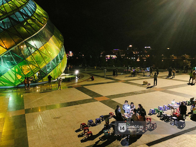 Khu vực xung quanh quảng trường chỉ có lác đác vài du khách đi lại, ăn uống. Còn nhớ vào đêm Trung thu (30/9), dân mạng rất "sốc" khi chứng kiến cảnh nơi này "đông không lối thoát" cơ mà!