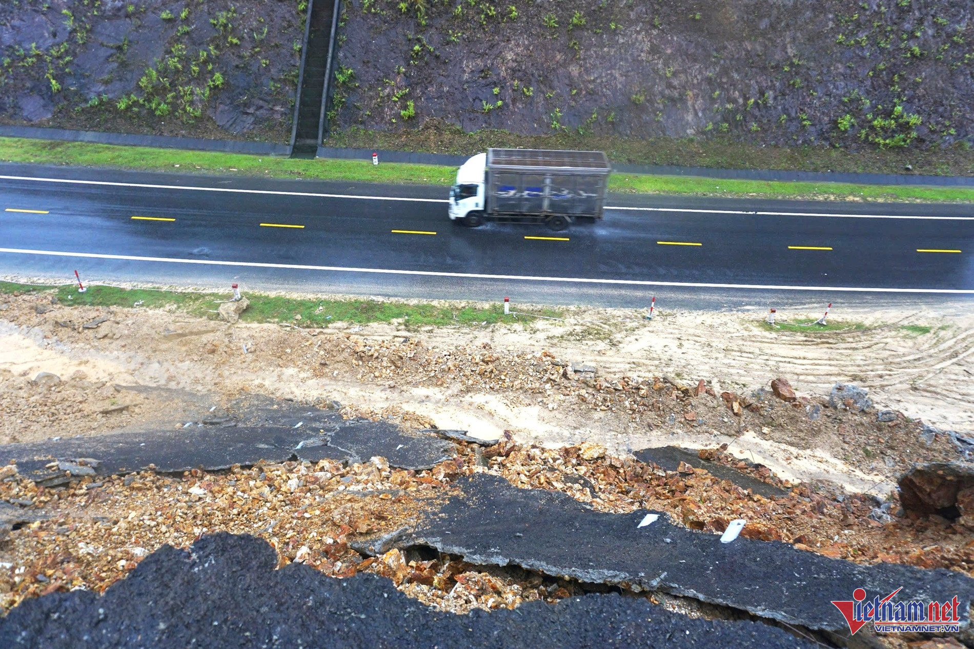 Nhiều vị trí khác trên cao tốc cũng ghi nhận tình trạng sạt lở đất đá, biển báo giao thông bị hư hỏng. Mưa lớn những ngày qua cũng tạo ra các dòng chảy từ trên đồi xuống, gây nguy hiểm cho các phương tiện lưu thông. Lực lượng chức năng đã giăng dây và đặt biển cảnh báo nguy hiểm để người điều khiển phương tiện chú ý quan sát.