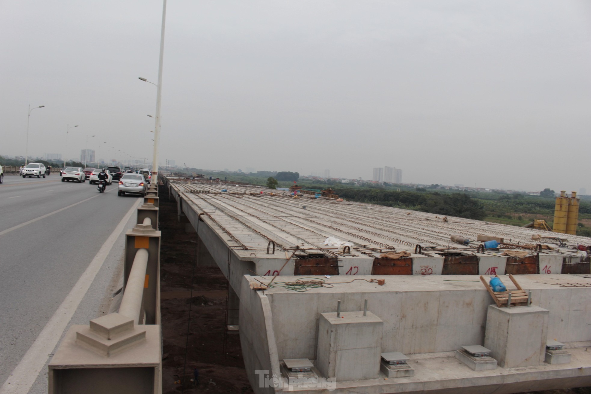 Hình hài mặt cầu Vĩnh Tuy cả 2 hai đoạn phía Long Biên đang dần hình thành với mặt cầu rộng 40 mét, 8 làn xe ô tô sau khi được thông xe.