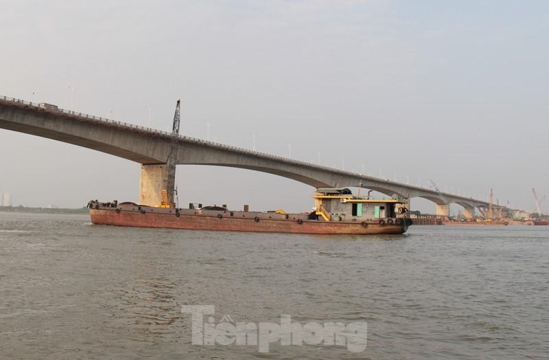 Để thi công các trụ ở giữa sông nhà thầu đã phải dùng các xà lan nổi tải trọng từ 1.000 tấn trở lên.