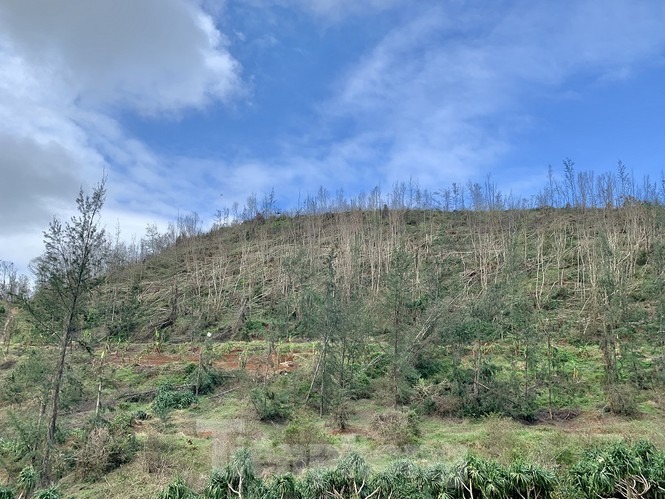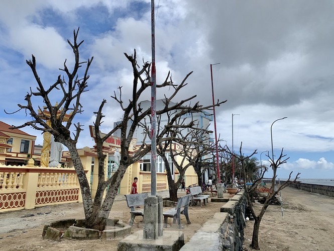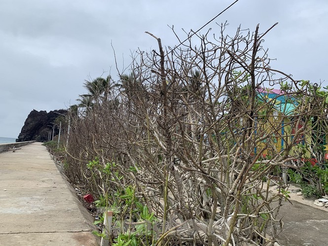 Sau bão, hàng nghìn gốc cây xanh trên huyện đảo Lý Sơn, tỉnh Quảng Ngãi bị rụng lá, chết khô, bật gốc. 'Có thể 5-10 năm nữa cây xanh trên huyện đảo này mới trở lại được như trước khi bão chưa tàn phá', ông Đặng Tấn Thành, Phó chủ tịch UBND huyện khẳng định.