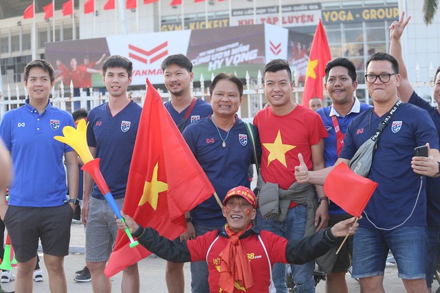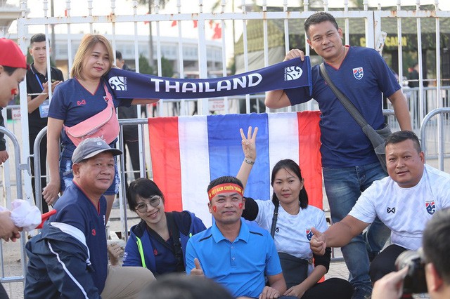 Rất nhiều CĐV của đội tuyển Thái Lan đã có mặt sớm tại sân. Đặc biệt, trước lúc vào bên trong sân, các CĐV Thái Lan đã tranh thủ check-in làm kỷ niệm cũng như hát vang những bài truyền thống nước nhà. Trước không khí ấy, rất nhiều CĐV Việt Nam vui vẻ chụp ảnh cùng với CĐV nước bạn.
