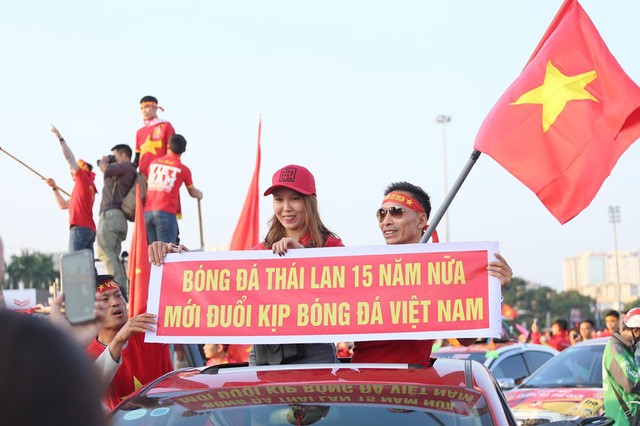 Trước giờ diễn ra trận đấu, hàng trăm CĐV Thái Lan đã có mặt trước SVĐ Mỹ Đình để cổ vũ cho đội tuyển của mình và được người Việt đón tiếp nồng hậu.