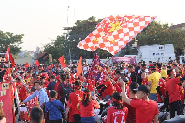Gần 17h chiều, hàng vạn CĐV đã có mặt tại quảng trường SVĐ Mỹ Đình để chuẩn bị vào bên trong cổ vũ cho trận đấu giữa đội tuyển Việt Nam gặp Thái Lan.