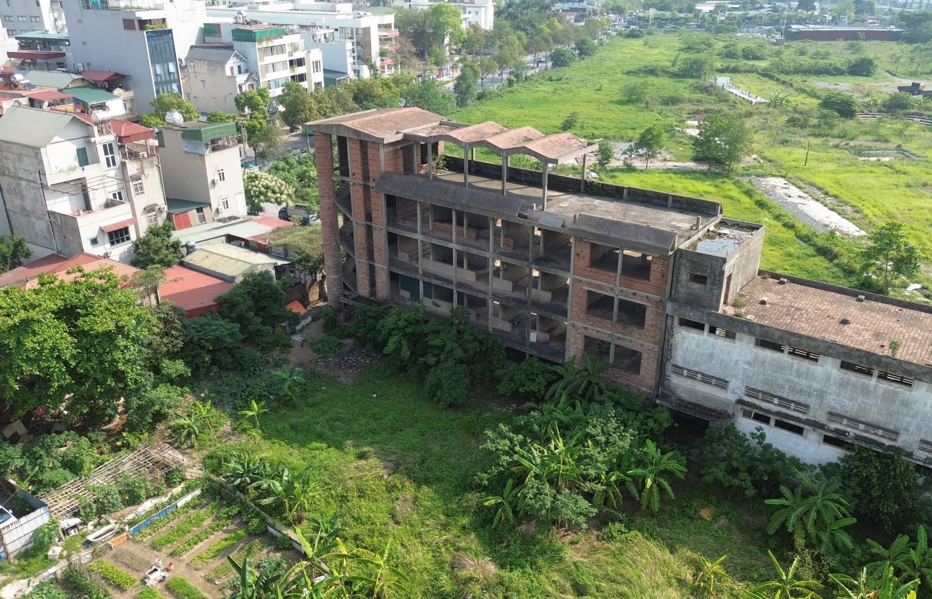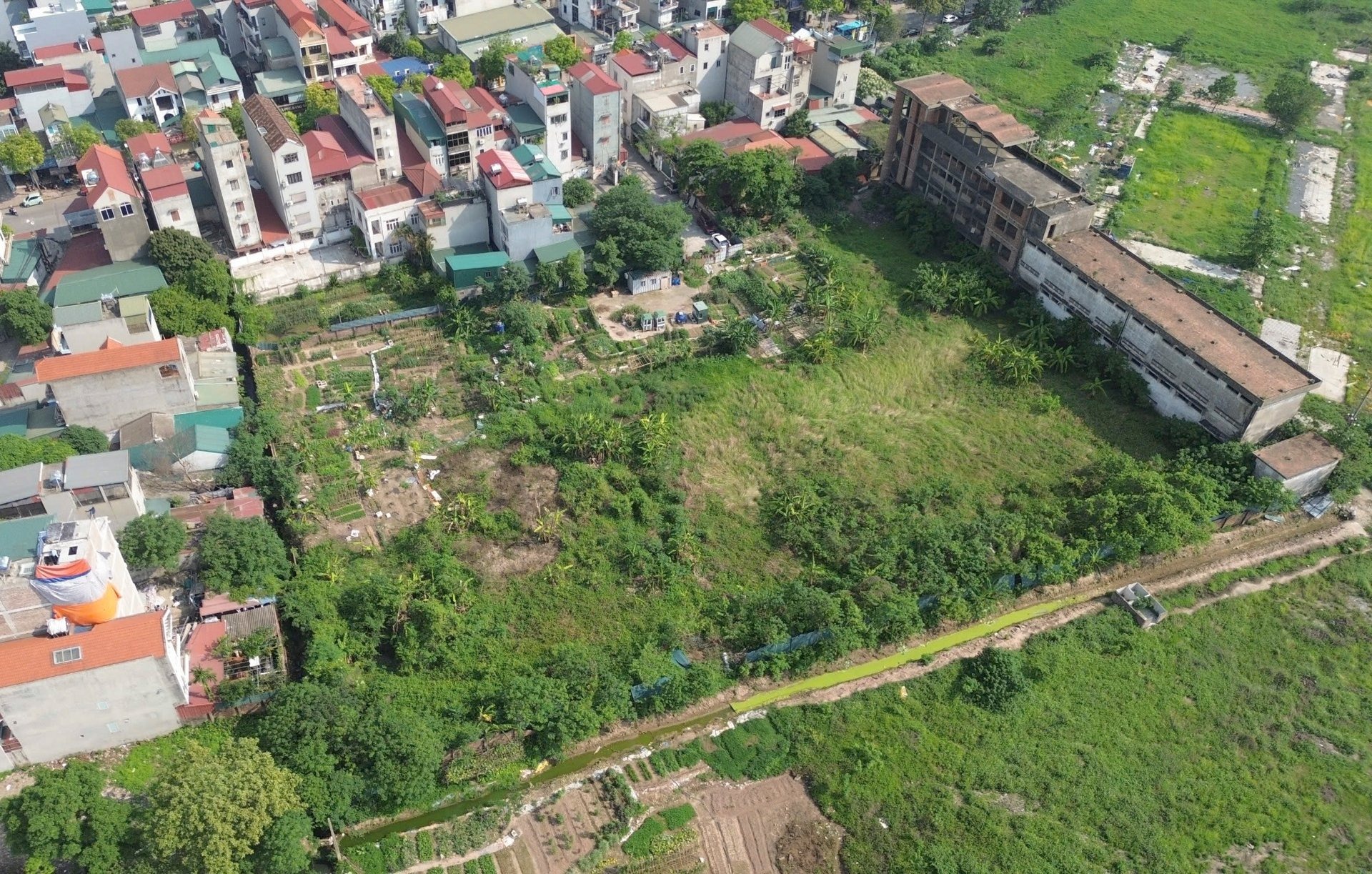 Dự án nhà ở xã hội IEC Bảo Ngọc (Long Biên, Hà Nội) chậm tiến độ, hiện bị bỏ hoang, một phần đất được người dân tận dụng trồng rau, rác thải vây quanh.