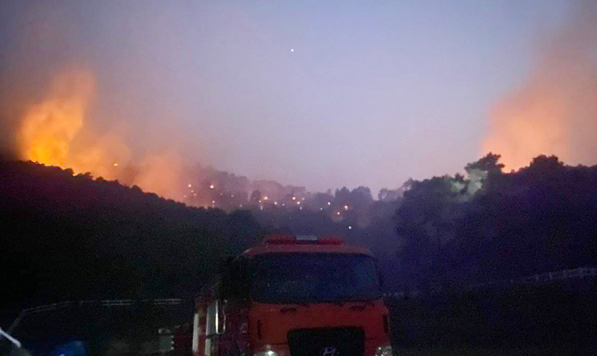 Từ hiện trường cho thấy, vị trí cháy rừng lan ra gần nhà dân và cây xăng bên quốc lộ 46A (xã Nam Thái). Xe cứu hỏa, xe cứu thương đã túc trực sẵn sàng.