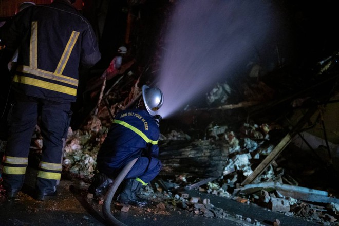 | Chiến sĩ PCCC đẫm mồ hôi, mệt nhoài sau nỗ lực khống chế đám cháy quán bar ở phố Phó Đức Chính |