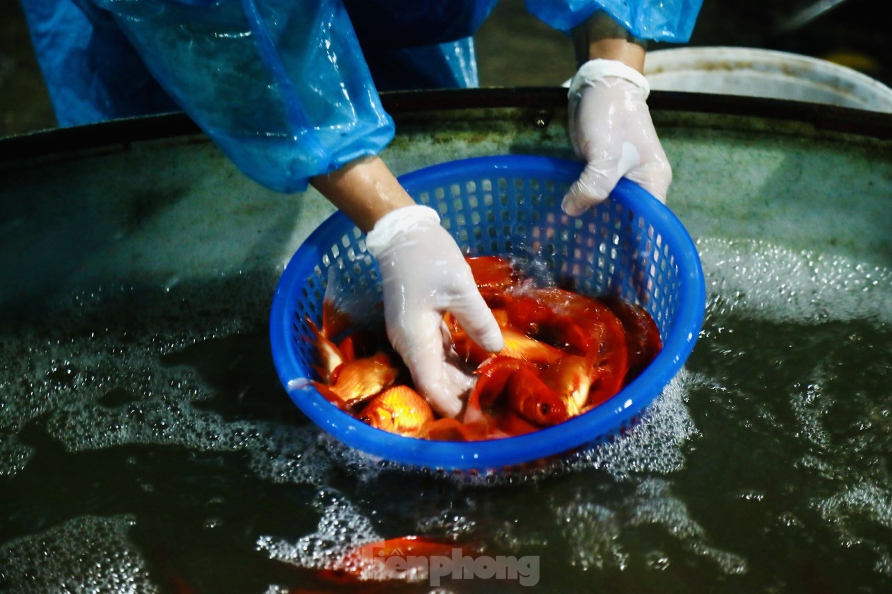 Rạng sáng 31/1 (tức 21 tháng Chạp), chợ cá Yên Sở ngập sắc đỏ trước ngày tiễn ông Táo về trời. Cá chép năm nay có mẫu mã đẹp, giá từ 60.000 đến 90.000đ/kg.
