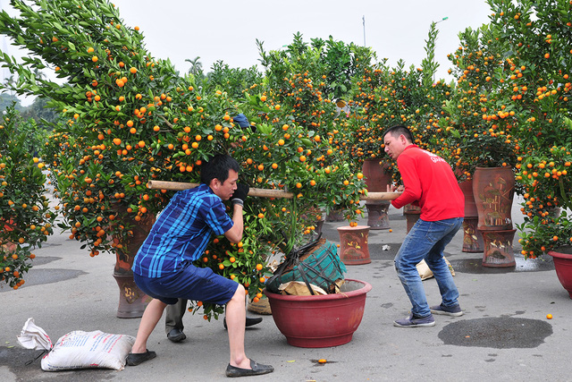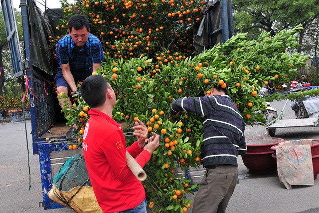 Mặc dù còn nửa tháng nữa mới đến Tết nhưng nhiều người dân đã tới đây để lựa chọn được cây cảnh ưng ý nhất cho mình. Các loại cây cảnh như đào, quất, mai ... vẫn liên tục được chuyển đến để phục vụ nhu cầu người dân trong những ngày sắp tới.