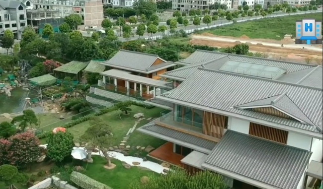 Căn biệt phủ được cho là dinh thự đẹp nhất Hà Nội với kiến trúc phong cách Nhật Bản, trong khuôn viên biệt phủ có đầy đủ tiện ích cùng rất nhiều cây xanh. Mặt trước là tiểu cảnh với hồ nước được gia chủ nuôi cá Koi và trồng sen. Toàn bộ sân vườn được trồng đủ các loại cây quý hiếm. Xung quanh căn biệt phủ là hàng rào kiên cố cao đến hơn gần 3m, đều camera giám sát để đảm bảo an ninh 24/7.