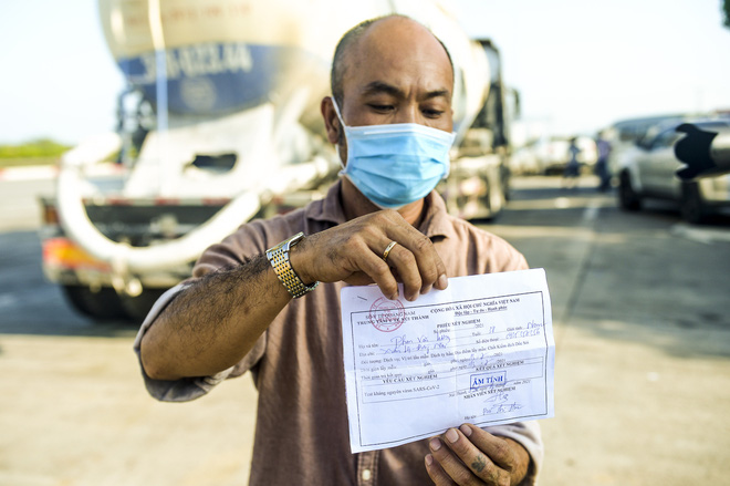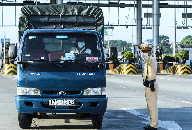 Ghi nhận của PV trong sáng 14/7, tại chốt kiểm soát COVID-19 trạm thu phí Cao tốc Pháp Vân - Cầu Giẽ, nhiều xe tải, xe khách đã phải quay đầu vì đến từ vùng có dịch.