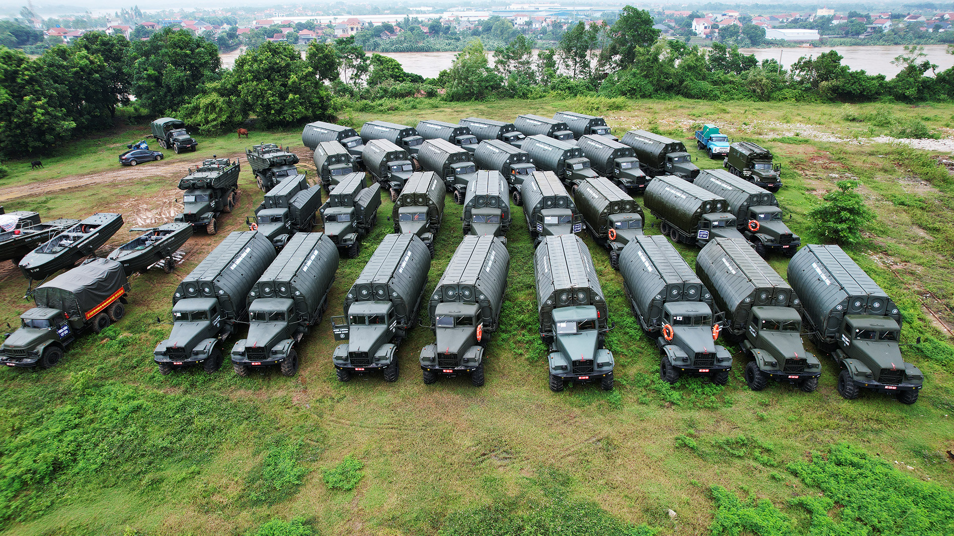 Rạng sáng nay (10/9), Lữ đoàn 249, Binh chủng Công binh (Bộ Quốc phòng) đã hành quân đến xã Hương Nộn, huyện Tam Nông (tỉnh Phú Thọ) để triển khai bắc cầu phao qua sông Hồng.