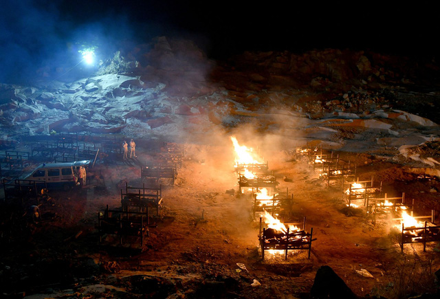 Hình ảnh những giàn hỏa táng rực lửa thế này chẳng còn xa lạ với nhiều người sau hơn 1 tuần làn sóng Covid-19 thứ 2 bùng phát tại Ấn Độ.