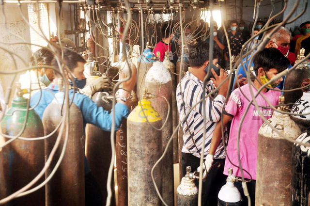 Các quan chức y tế ở New Delhi đã phải cầu xin sự giúp đỡ về bình khí oxy trên mạng xã hội.