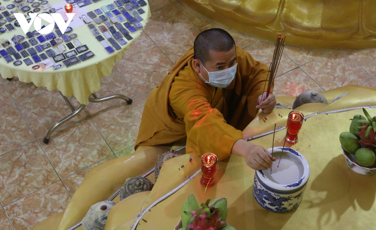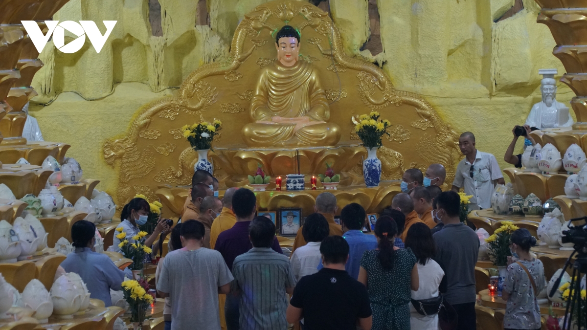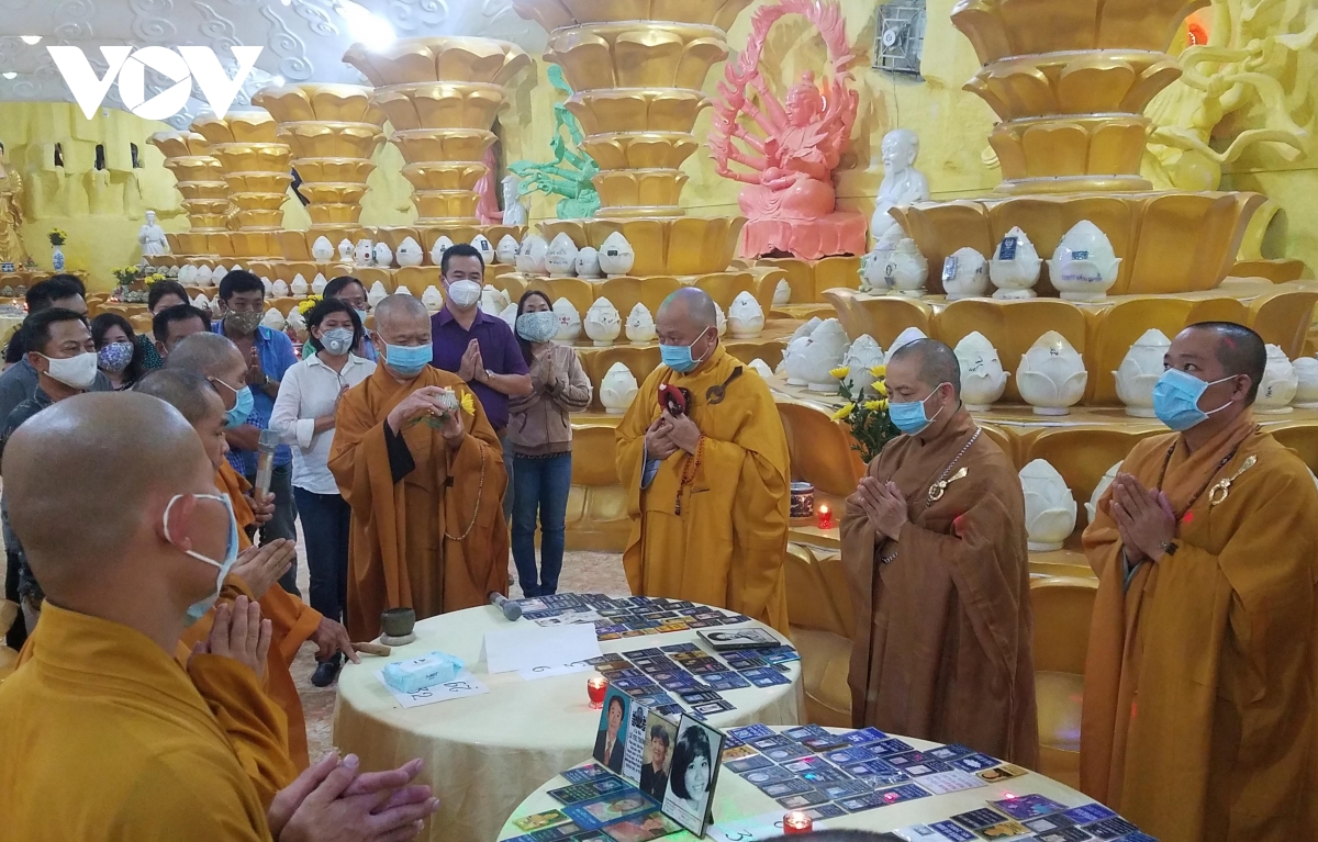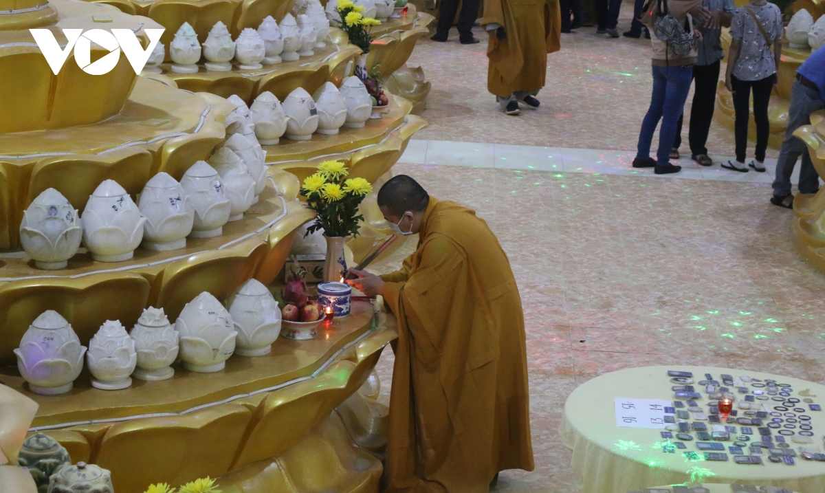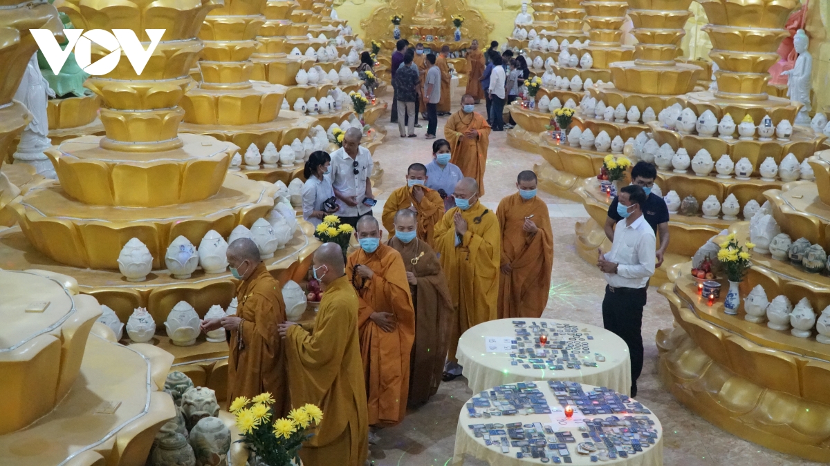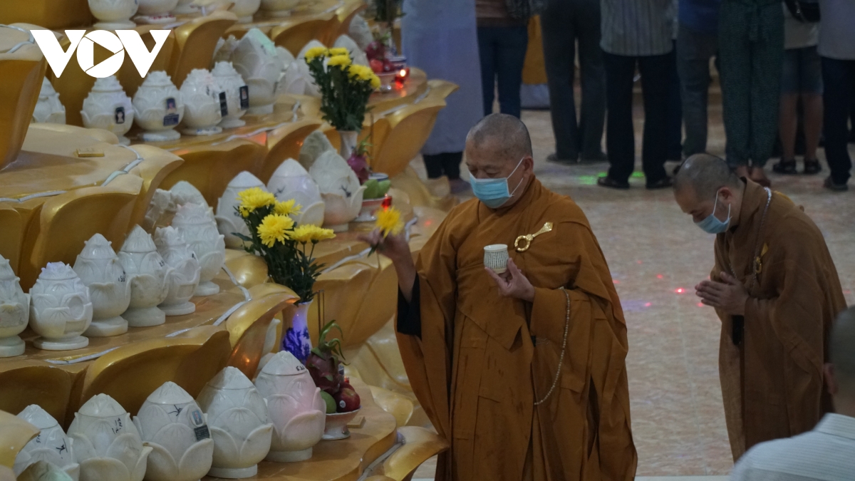 Sau một buổi thu dọn, sắp xếp, phân loại các hũ cốt thân nhân của người dân gửi, chiều 7/9 chùa Kỳ Quang 2 (quận Gò Vấp, TP.HCM) phối hợp với Ban trị sự Giáo hội Phật giáo Việt Nam quận Gò Vấp tổ chức Lễ Sái tịnh các hũ tro cốt tại đây.