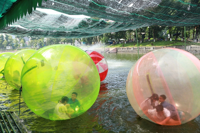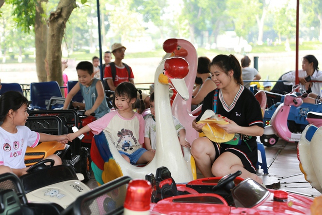 Mặc dù thời tiết nắng nóng, tuy nhiên nhiều gia đình vẫn lựa chọn công viên Thủ Lệ (Hà Nội) là điểm tham quan, vui chơi cho con em trong ngày Quốc tế Thiếu nhi 1/6.