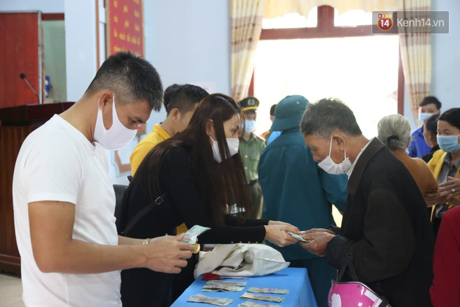 "Hôm nay, con về địa phương trao quà cứu trợ cho bà con, mỗi người sẽ nhận được số tiền 3 triệu đồng. Ngoài ra khi trao, con thấy ai có hoàn cảnh khó khăn hơn con sẽ cho họ thêm một chút, mong mọi người thông cảm, nếu có gì sai sót mong mọi người bỏ qua, con xin cảm ơn", Thủy Tiên chia sẻ.